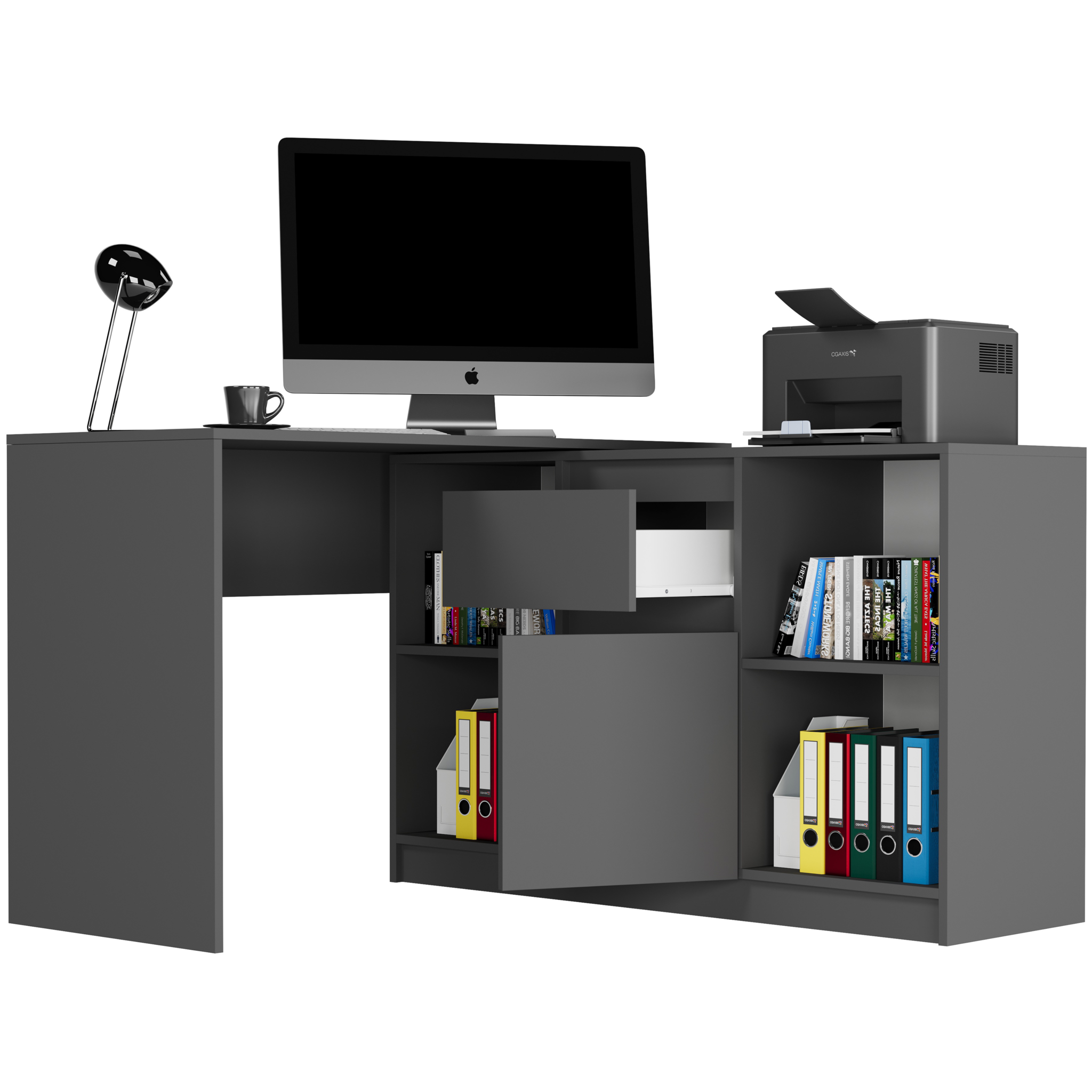 Maxy-Shop hoekbureau met zijn ruime oppervlak en handige opberglade biedt dit bureau de perfecte werkplek voor al je taken u kunt het hoekbureau zowel links als rechts maken. Zeg maar dag tegen rommelige kantoren en hallo tegen georganiseerde productiviteit. Investeer vandaag nog in dit hoekbureau en transformeer je kantoor of slaapkamer in een waar paradijs van efficiëntie