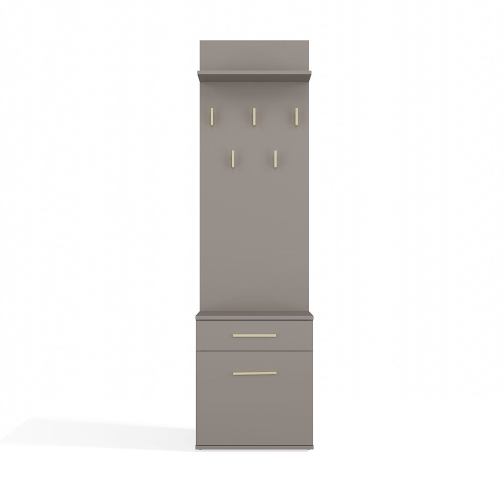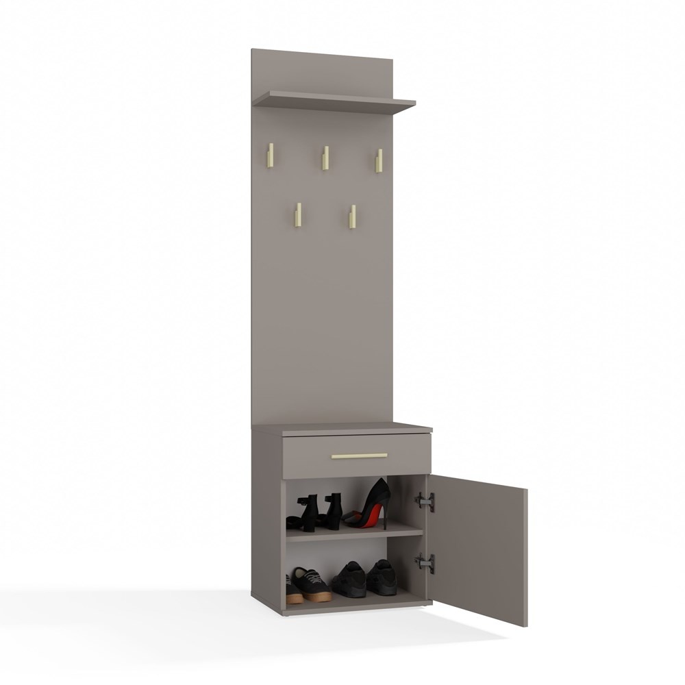 Wandkapstok klei met 5 haken . Deze kapstok is perfect voor in de hal of woonkamer. Hij heeft 5 haken waardoor er genoeg plek is voor jassen, tassen en andere accessoires. De Hal kast Met Kapstok in de kleur klei is stevig en duurzaam.De kast is 35 cm diep, 50 cm breed en 57 cm hoog. De kapstok is 50 cm breed, 27 cm diep en 124 cm hoog en bestaat uit 2 delen. Deze kapstok is perfect voor elke hal of entree.
