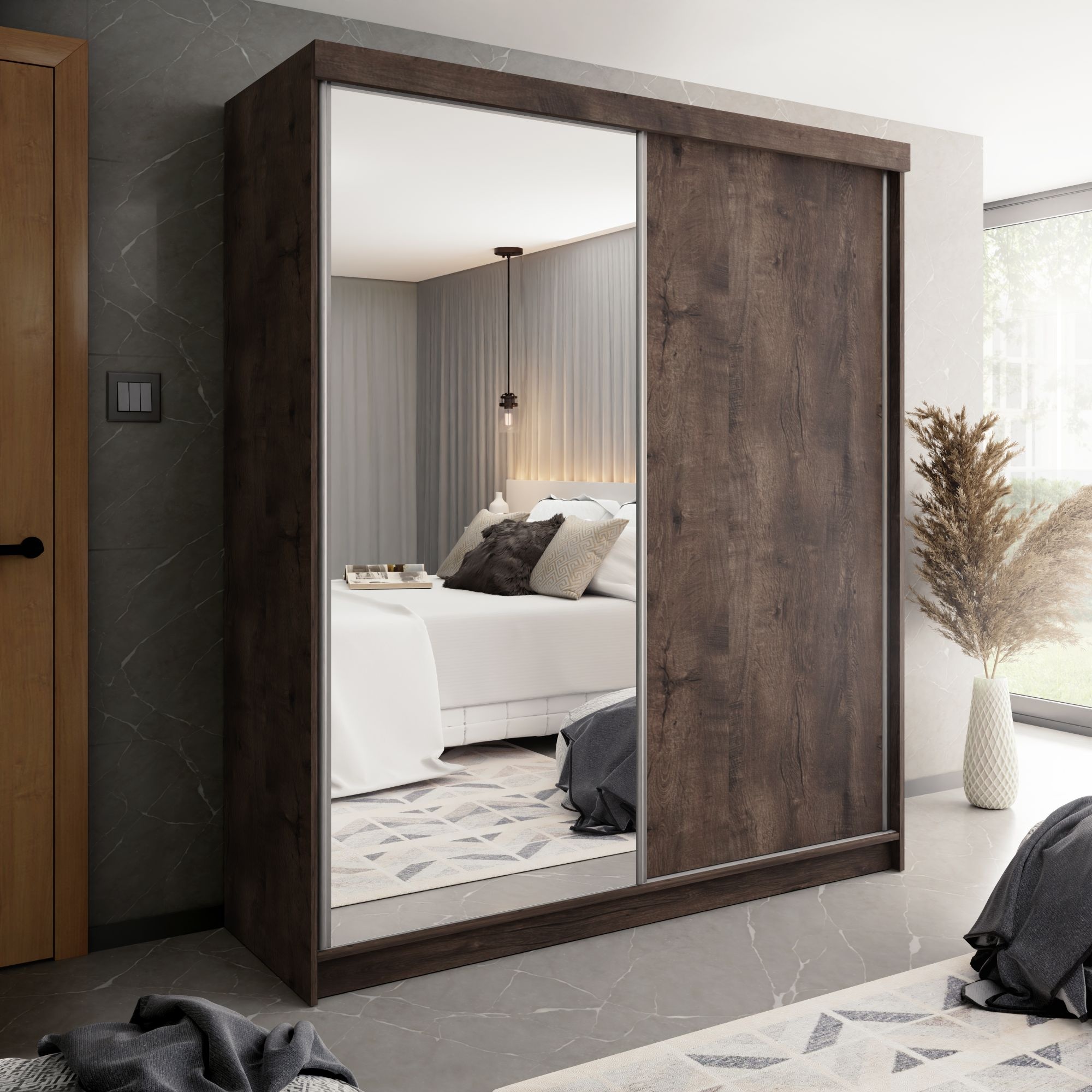 Ontdek onze stijlvolle kledingkast met schuifdeuren en een handige spiegel aan de buitenkant. Perfect voor degenen die ruimte willen besparen en hun kleding netjes willen houden. De kast is verkrijgbaar in verschillende kleuren en maten, zodat je altijd de perfecte opslagoplossing kunt vinden.