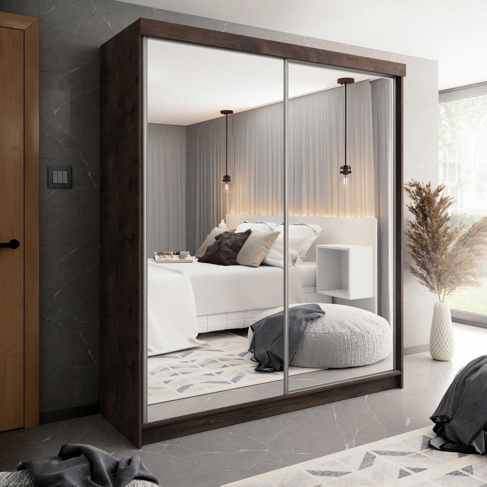 Ontdek onze stijlvolle kledingkast met schuifdeuren en een handige spiegel aan de buitenkant. Perfect voor degenen die ruimte willen besparen en hun kleding netjes willen houden. De kast is verkrijgbaar in verschillende kleuren en maten, zodat je altijd de perfecte opslagoplossing kunt vinden.
