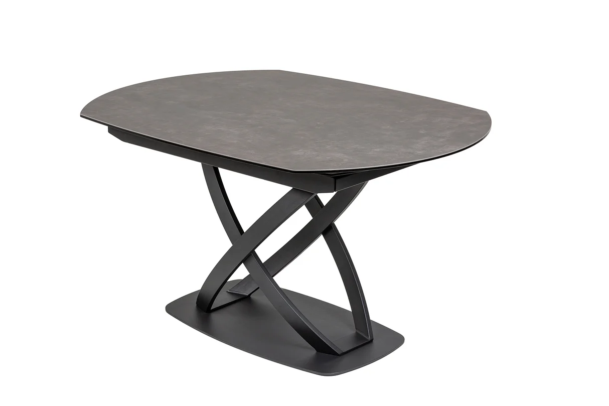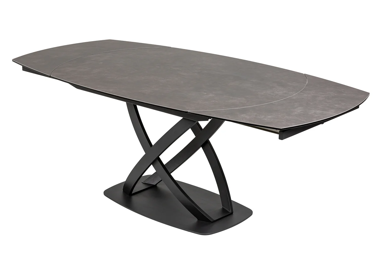 Antraciet keramiek: De uitschuifbare eetkamertafel van Maxy Shop heeft een prachtig antraciet keramiek blad met gehard glas