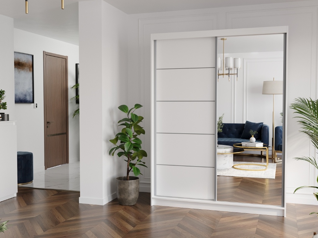 Schuifdeurkast rivano met spiegel wit 150 x 200 x 60 cm