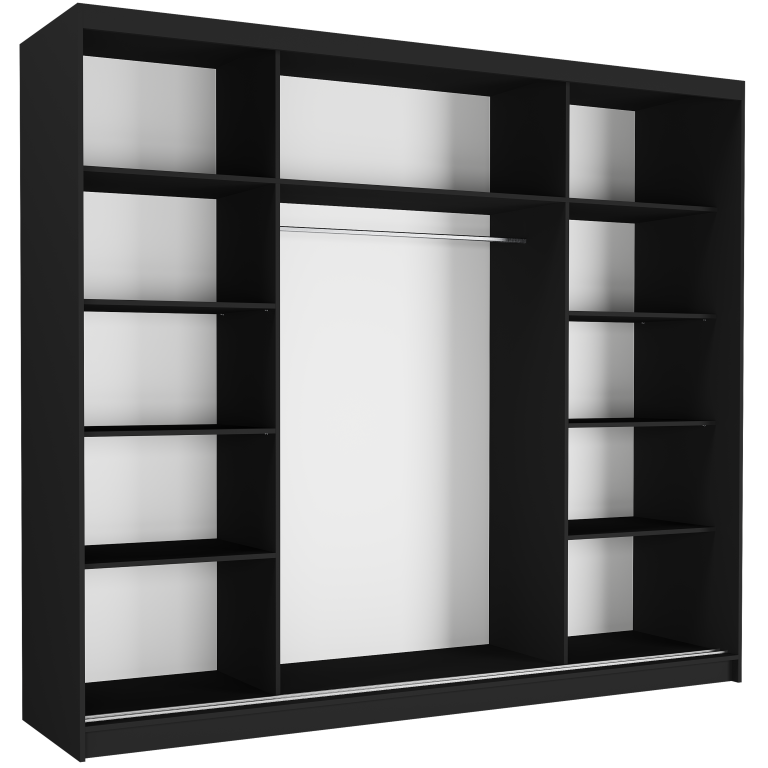 Schuifdeurkast norvio met spiegel zwart 250 x 218 x 60 cm