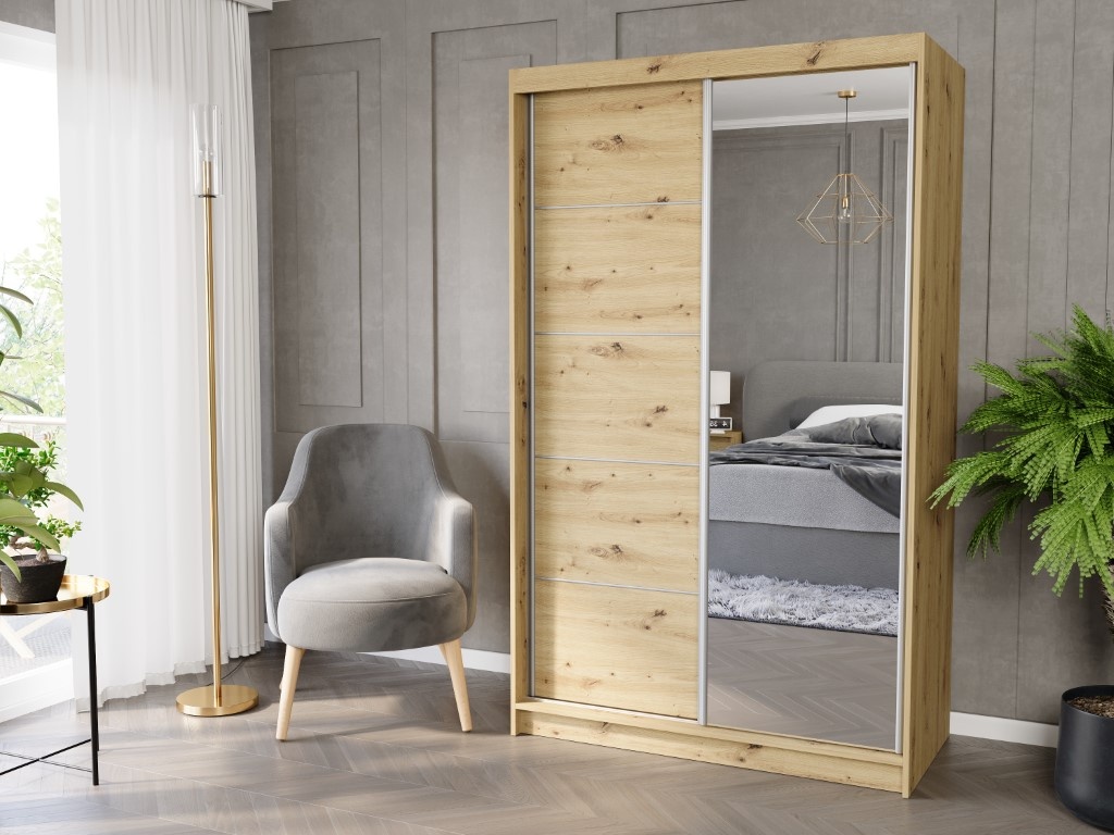 Schuifdeurkast met spiegel eiken 120 x 218 x 60 cm